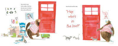 Bear can’t hold on much longer, he’s desperate, but the door is locked and the toilet is occupied. He is soon joined by Pig, Elephant, Tiger, Penguin, Monkey and Giraffe who are all needing to go too! When will their patient wait finally come to an end? Who is in the loo and why are they taking so long?