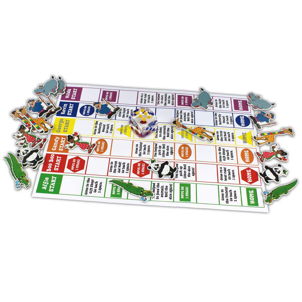 • A board game with cut-out characters and jumbo dice, to help develop cognitive skills.